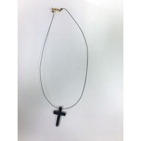 Looking for a hematite cross necklace. This necklace is 16.5 inches long a black fish line like necklace. 800 Gauss surface strenght. This is a clearance item and SOLD AS IS.