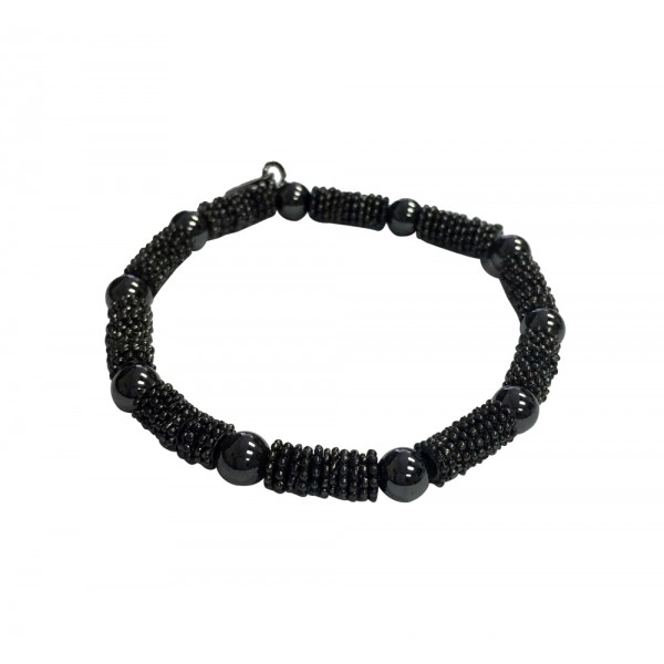 Magnetic Hematie bracelet is great for a stylish person. This Antique black Hematite Magnetic Bracelet is unique in its own way. This magnetic bracelet is fashioned with (10) hematite Tuchi Pearls on a Flexi-band cord.